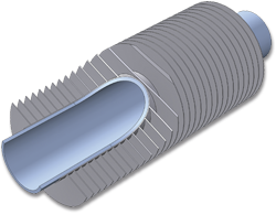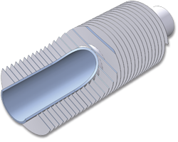 Die runden Silikonspacer sind eine Alternative zu den Sechskantspacern. Die stoßdämpfende Eigenschaft bleibt erhalten, während die Rohre um 360° um die Längsachse gedreht werden können. Die Lokalisation und der äußere Durchmesser der Spacer werden durch die Konstruktion bestimmt. |